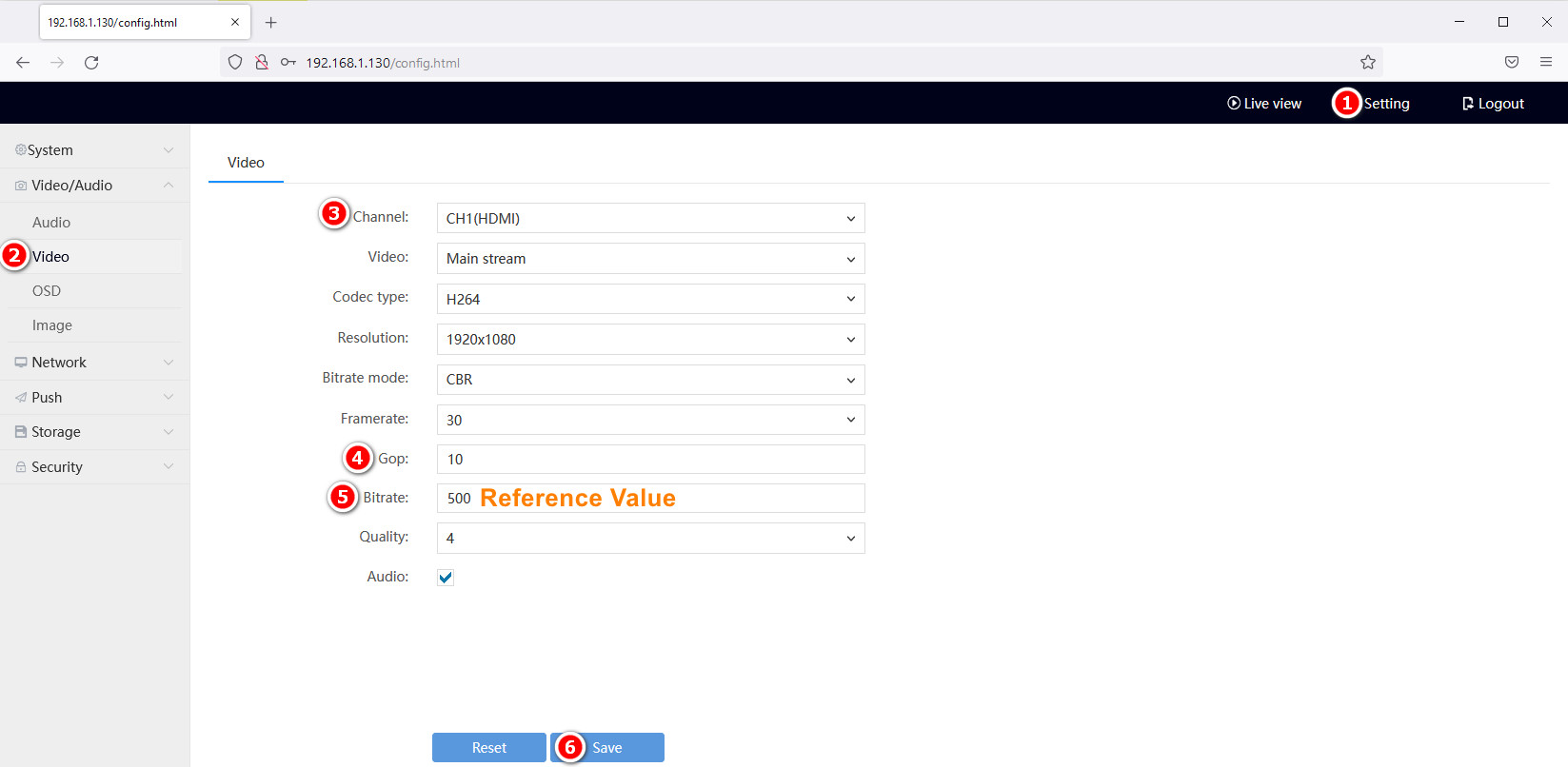 2. It's recommended to set lower bitrate like 500Kbits/s at the very beginning if your local bandwidth is not enough.